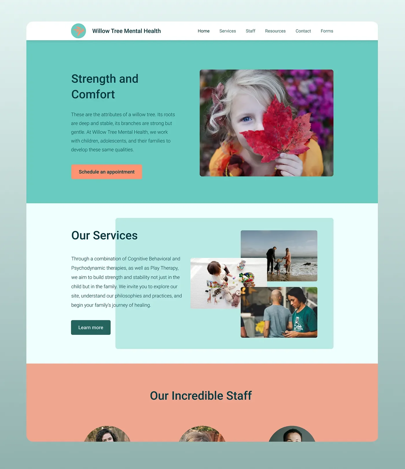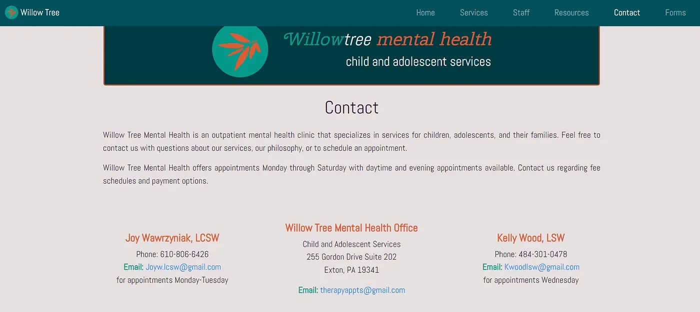 Check it out! The updated site is live and working at http://www.willowtreementalhealth.com/